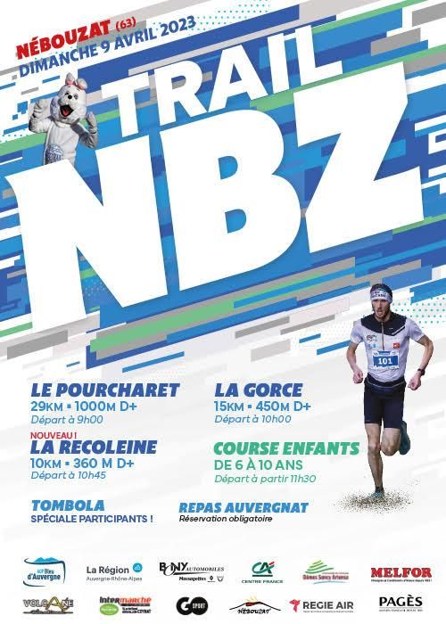 Le TRAIL NBZ au cœur des volcans d’Auvergne. 3 parcours : un plutôt « punchy » et un qui vous emmèneront dans la vallée de la Gorce, au Puy de Pourcharet et de Monteillet. Une course pour enfants de 6 à 10 ans et un repas auvergnat (réservation obligatoire) seront également au programme pour encore plus de convivialité !