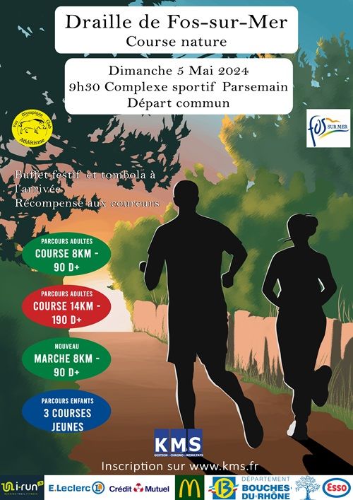 La Draille de Mourre Poussiou, course pédestre organisée par le Fos Olympique Club, Course nature, Trail, Challenge Golfe de Fos, Super Challenge FSGT. Parcours en colline sur chemins vallonnés et dans les salins. Accessibles à tous (sauf Handisports).