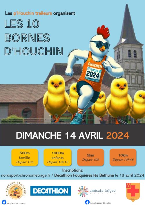 Béthune Athlétisme et la mairie de Houchin vous invitent à leur course, "les 10 bornes de Houchin". Notre course nature et responsable propose deux courses de 5 et 10 km ainsi qu'un parcours "parent - enfant" de 500m entièrement sécurisé et un 1Km enfant