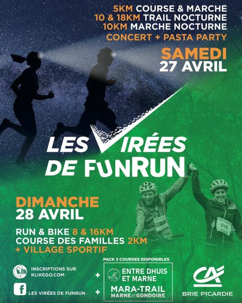 Les virées de Funrun sont de retour ! L’événement se déroulera sur deux jours les samedi et dimanche. Un 5km marche et trail, deux trails nocturnes de 10 et 18 km ainsi qu’une marche nocturne de 10 km. Deux run & bike et course des familles. Pasta party offerte et musique.