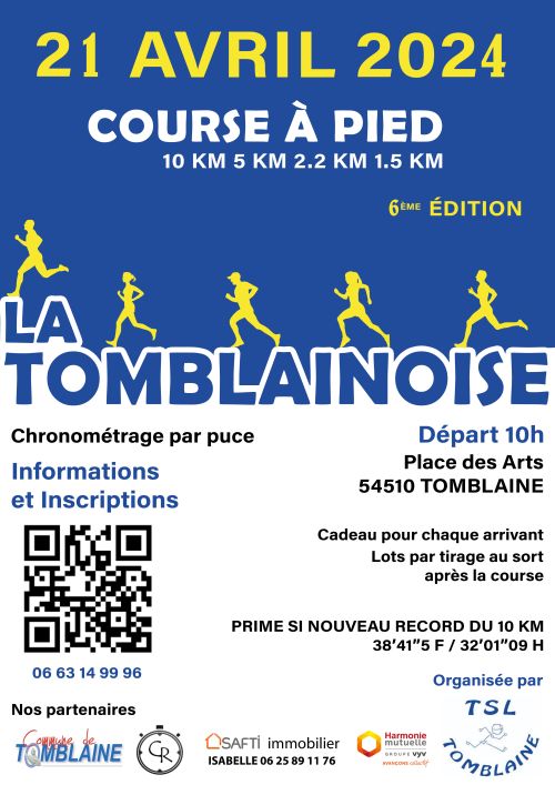 La Tomblainoise propose des épreuves sur route et pistes cyclables majoritairement le long de la rivière Meurthe, sous forme de boucle. Ravitaillement à mi-course en eau, pour le 10 Km et complet à l'arrivée pour toutes les épreuves.