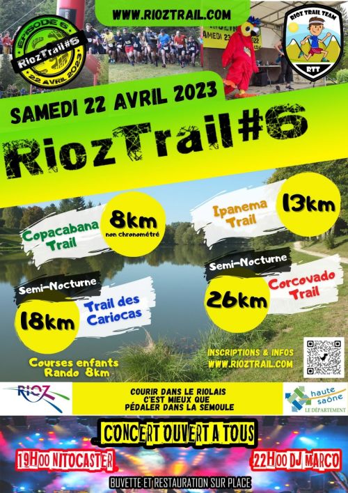 Plaisir, Nature, Bonne Humeur… tels sont les maître-mots de ce RiozTrail. Nous serons très heureux de vous accueillir et de vous faire découvrir notre vaste terrain de jeu riolais. Un parcours découverte (non chronométré) de 8 km en mode trail ou rando vous sera proposé... Pour les plus motivés : 3 courses chronométrées