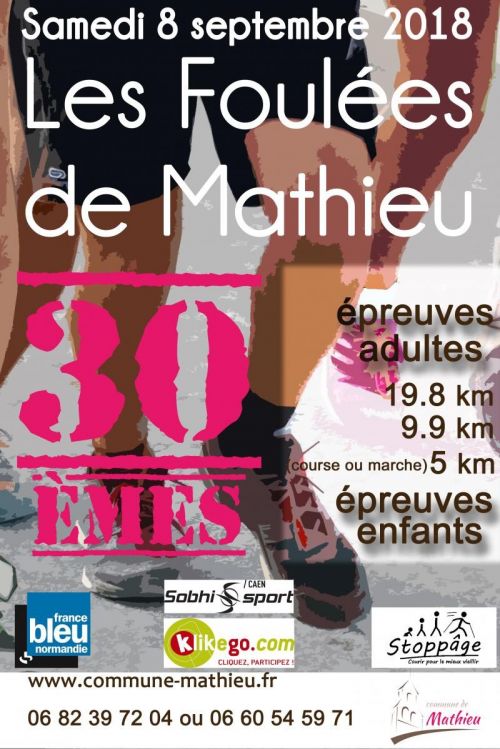 30èmes Foulées de Mathieu, organisées par les membres de la commission municipale "animation", l'association Sport Loisirs Culture avec l'aide de nombreux bénévoles. A cette occasion nous aurons le plaisir d'accueillir le groupe qui assurera l'animation musicale.