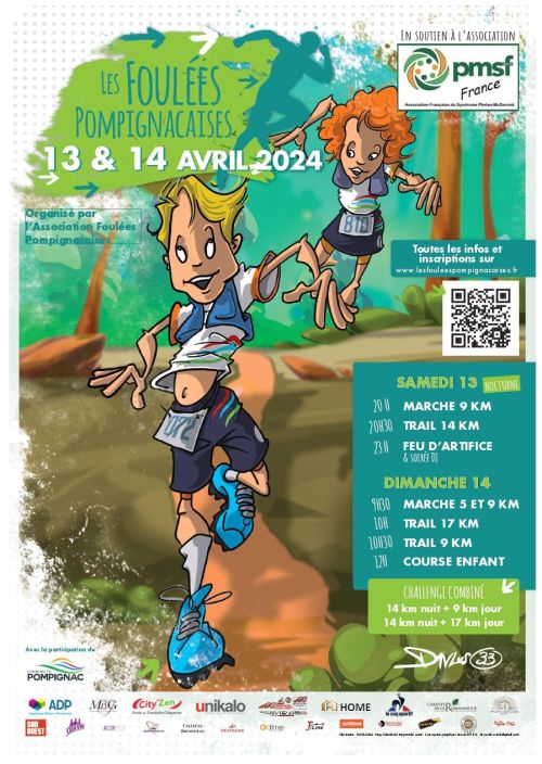 Les Foulées Pompignacaises ont été créées en 2007 par le comité des fêtes de Pompignac. Depuis la treizième édition, nous avons voulu apporter une touche de nouveauté en remplaçant les courses par des trails, courses en milieu naturel, typiquement sur des chemins de terre et des sentiers de randonnée en plaine et en forêt. Cette année, nous avons décidé de rendre cet événement encore plus festif et d’aménager la zone de départ/arrivée des courses. Nous aurons le plaisir d’accueillir plusieurs concerts gratuits à partir de 11h30 pour que coureurs.