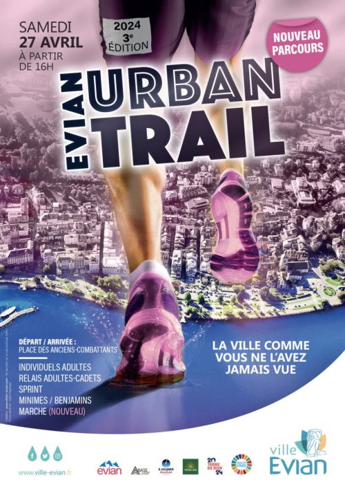 Evian Urban Trail, organisé par le service des sports de la ville d’Evian, départ/arrivée se situe Quai Charles Albert Besson. Gratuit pour les moins de 18 ans. Courses Minimes 4 km et course Benjamin(es) 3 km – Départ à partir de 16h00