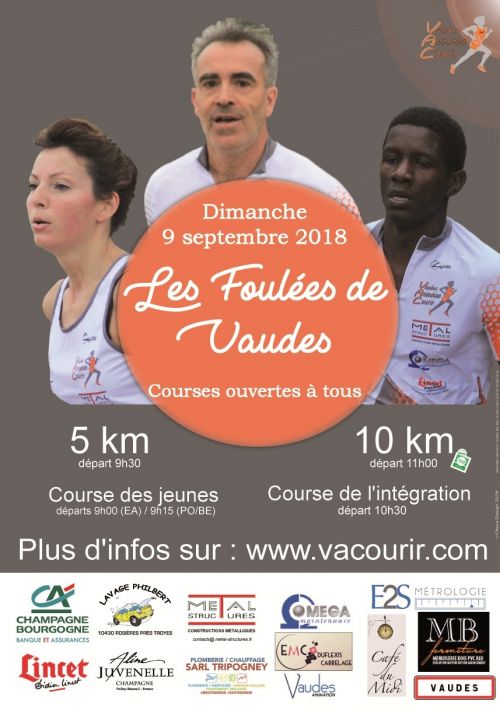 La 2ème édition des Foulées de Vaudes aura lieu le dimanche 9 septembre. Le parcours change légèrement pour améliorer le spectacle. Départ et arrivée Grande Rue face à la mairie de Vaudes. Chronométrage du 5 et 10 km par puce.