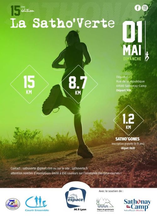 Cet événement comporte deux parcours de 15 km (15.2 km) et 8 km (8.7 km) de cadet à Master et un parcours de 1,2 km réservé aux enfants (Satho'Gones).