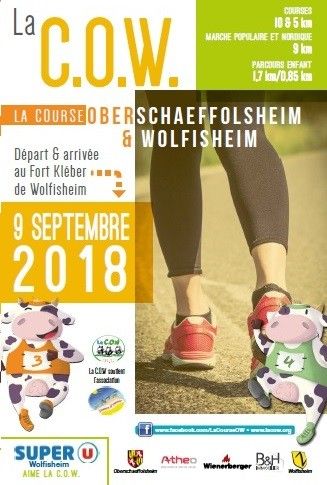 La C.O.W : Course Oberschaeffolsheim Wolfisheim. L'ensemble des participants recevra un lot souvenir. Pour les 10km & 5km, les 3 premier(e)s du scratch, ainsi que les 3 premier(e)s de chaque catégorie recevront une récompense. Prix au meilleur déguisement et à l’équipe/club/société la plus représentée.