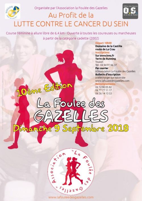 La Foulée des Gazelles aura lieu au Domaine de La Castille, comme l’an dernier. Nous espérons vous voir très nombreuses ! Distance de 6 km 400 sur un parcours tracé au milieu des vignobles du magnifique Domaine de la Castille, situé à La Crau . Un endroit ou règnent la sérénité et le calme.