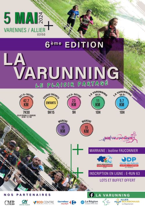 "La Varunning" est organisée par l’association Va-Running Sur Allier avec le soutien des Villes de Varennes Sur Allier, Montoldre, St Gérand de Vaux et St Loup.