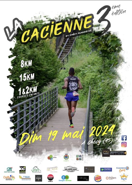 Course nature "La Cacienne" de 8 ou 15 Km. Plus une course de 1 ou 2 Km pour les enfants. Une seule boucle, tout terrain pour les 2 distances, accessible à tous, idéal pour découvrir Chécy, Mardié et Combleux en empruntant des chemins de halage et sentier du bord de Loire.
