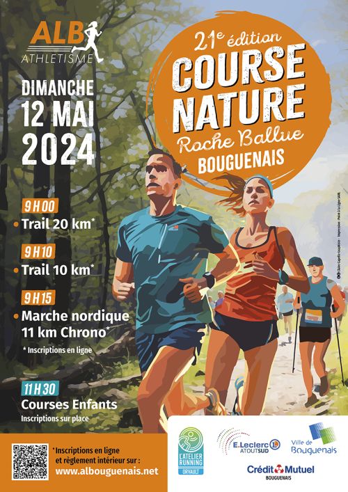 La section athlétisme de l'AL Bouguenais vous attend, pour la Course Nature Bouguenais, à la base de loisirs de la Roche Ballue. A deux pas de Nantes, le parcours, agrémenté de paysages de bord de Loire, est constitué de plus de 90 % de chemins et sentiers.