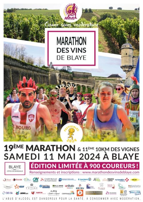 Créé en 2004, le marathon des vins de Blaye arrive à sa 17ème édition. Son objectif est de faire découvrir aux coureurs et accompagnateurs de la France entière (et d’ailleurs!) la belle région de Blaye et son vignoble au travers de cette épreuve résolument festive. Soutenu dès l’origine par tous les acteurs institutionnels et privés de notre région, le Marathon en est devenu un évènement incontournable. L’épreuve a progressé tous les ans, tant en nombre de coureurs, qu’en budget, qu’en animations, qu’en nombre de partenaires à ses côtés. Le bouche à oreille est excellent : les coureurs reviennent sur l’épreuve et la conseillent vivement à leurs proches.