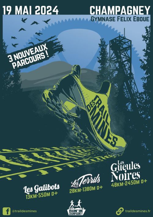 Trail des Mines organisé par l'association Run'In Champagney, au départ du site des Ballastières à Champagney, 3 parcours sont proposés, adaptés à tous les Traileurs.