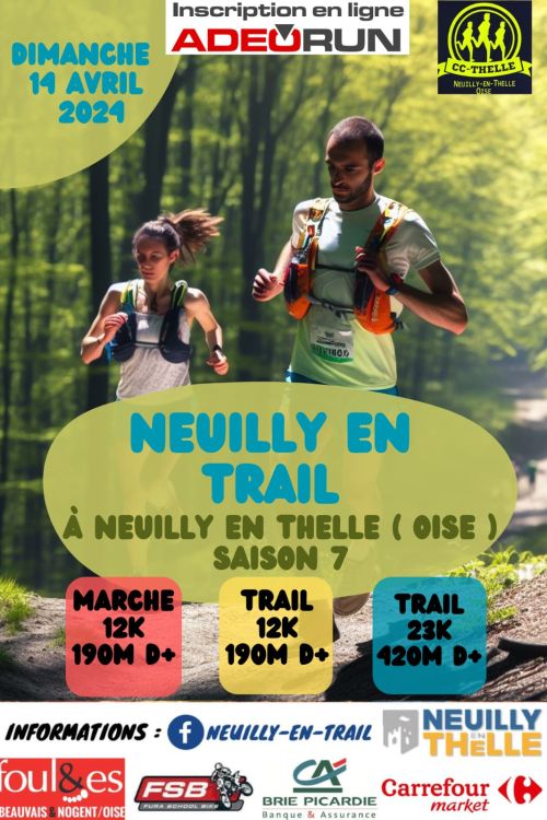 Une boucle de 12 km à travers des chemins et le bois Viville en auto-suffisance, ravitaillement à l'arrivée. Départ 9H30 au départ du complexe sportif Alain Mallon de Neuilly-en-Thelle. Course en faveur de la lutte contre le cancer.