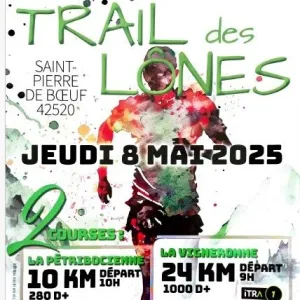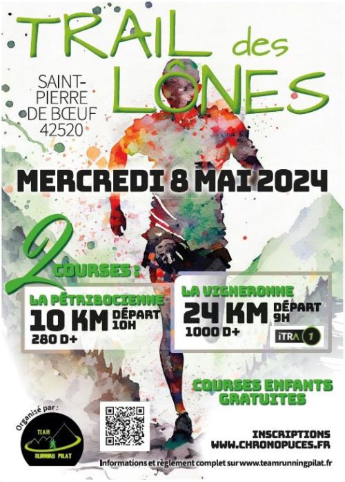 St Pierre de Boeuf - Lundi 8 mai 2024 Pour sa 8ème édition, la TRP Race change de nom et devient le Trail des Lônes. Les athlètes du Team Running Pilat vous ont préparé 2 nouvelles distances et vont encore vous accueillir dans une ambiance de folie le 8 mai 2024.