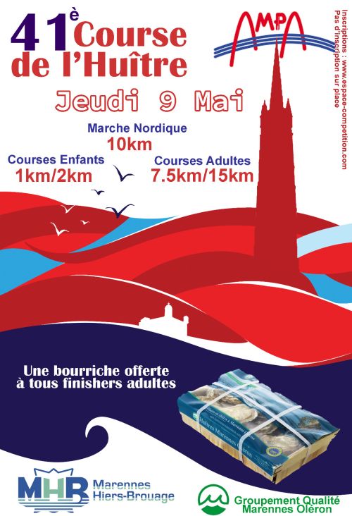 L'AMPA organise la 41ème course pédestre "course de l'Huître Marennes-Oléron". à 9h00 : 2 courses enfants de 1 et 2 Km