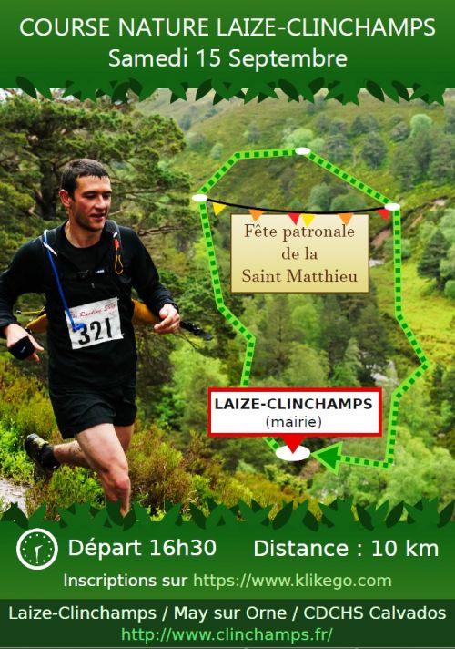 La course nature Laize-Clinchamps débutera à la Mairie de Laize-Clinchamps à 16h30, et se terminera au même endroit.