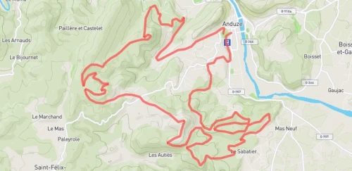 Parcours avec des monotraces nouveaux, les suppressions de la piste empruntée par la course de Pentecôte, et celle du passage chaotique entre les dolmens..bien noter que ce nouveau parcours accède au sommet de Lacan (antennes) par la face sud (15e km)