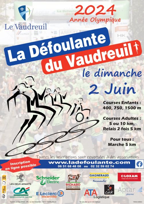 Fondée en 2009, la Défoulante est née de la passion du sport et du désir d’aider les autres. Ludique et festive, située au cœur du Vaudreuil, la Défoulante est devenue en 5 ans « La Course Incontournable » de la région. Une manifestation adaptée à tous : petits et grands, sportifs ou non, valides ou handicapés chacun peut participer à son rythme et selon son envie (Course petiots de 400 m et 750m, Course enfants de 2km, Marche et course de 6 km pour les plus grands et les adultes).
