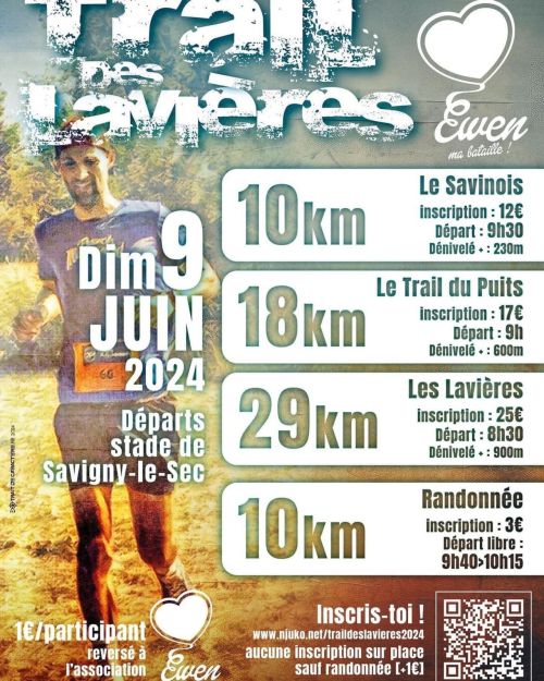 Trail des Lavières : Possibilité de s'inscrire le jour de l'épreuve jusqu'à 9h00. Le parcours sera identique à l'édition précédente. Récompense pour chaque participant et classement par catégories. Épreuve inscrite dans le challenge Trail.