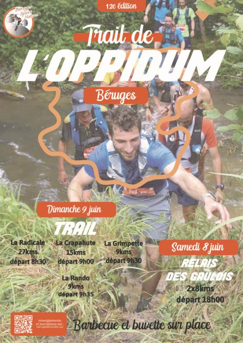 L'association Béruges Sport Nature et ses nombreux bénévoles vous invitent à participer au Trail de l'Oppidum. Venez courir sur les pas des Gaulois, au coeur de la vallée de la Boivre. Comme l'année passée, trois parcours seront proposés.