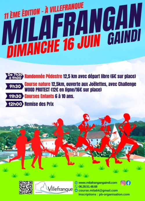 La prochaine course Milafrangan Gaindi est composée d’une randonnée et d’une course nature (trail) de 12,545km avec un dénivellé d’environ 400m.