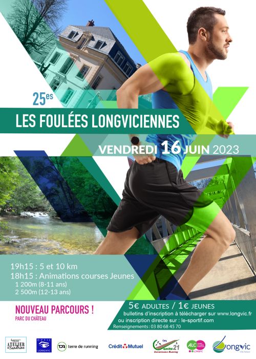 Les Foulées Longviciennes Course populaire ouverte à tous se déroulant dans un environnement mixte très agréable (bitume et chemins de terre boisés non boueux). Inscriptions jusqu'au jour de la course (clôture 5' avant le départ). Retrait des dossards uniquement sur place le jour de la course ; pour les personnes inscrites avant, le retrait se fait à un guichet spécifique (donc pas d'attente).