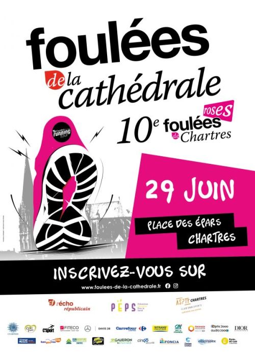 L'ASPTT Chartres et L'Echo Républicain co-organisent pour la 6e édition consécutive la mythique course Chartraine des Foulées de la cathédrale qui connait un succès grandissant depuis plus de 20 ans. Le parcours reste le même que l'an passé. Vous partirez depuis la Médiathèque et emprunterez la Butte des Charbonniers, les bords de l'Eure, les ruelles étroites des parties médiévales de Chartres, l'ascension de la rue Saint-Eman, les jardins de l'Evêcher, le Parvis de la Cathédrale, avec deux passages et arrivée Place des Epars !