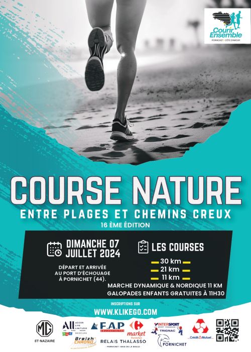 16ème édition de la course Entre plages et chemins creux organisée par le club Courir Ensemble Pornichet Côte d’Amour sur circuit alternant plages et chemins.