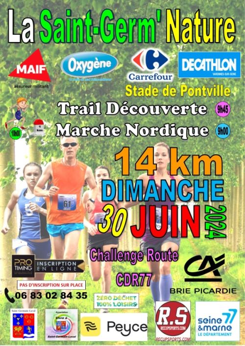 La Saint-Germ'Nature est la course nature découverte par excellence 13 km dans un parcours naturel et vallonné au milieu d'un décor champêtre mais sélectif. De quoi joindre le sportif au naturel dont 70% en pleine nature ! La touche supplémentaire aura vocation à accompagner cet évènement local par une sensibilisation environnementale.