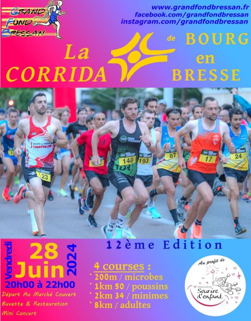 La Corrida est une course populaire, en soirée, sous forme de 3 boucles à réaliser suivant un parcours tracé en plein cœur du centre ville de Bourg en Bresse.