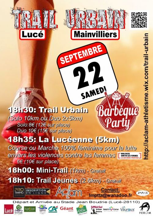 Le Trail Urbain de Lucé-Mainvilliers est une course pédestre qui se déroule sur les communes de Lucé (28110) et de Mainvilliers (28300). Le Trail Urbain de Lucé Mainvilliers est organisé par le club de Lucé Mainvilliers PTT Athlétisme, section locale de l’Athlé Chartres Lucé Asptt Mainvilliers