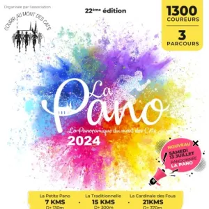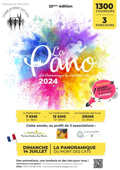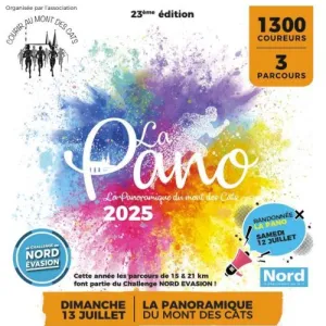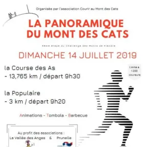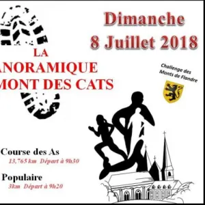C'est le grand rendez-vous de l'Association Courir au Mont des Cats. La course de la Panoramique du Mont des Cats a été créée en 2001, en même temps que le club ; elle a lieu le deuxième dimanche de Juillet. A cette occasion, l'Association développe chaque année une action caritative visant à reverser l'intégralité des bénéfices de la manifestation à une ou plusieurs association(s) locale(s), qui a (ont) élaboré un projet que nous contribuons à financer.