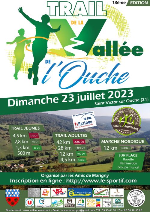 Trail de la Vallée de l'Ouche, course à pied sur terrain varié et balisé exclusivement sur sentiers et chemins organisé par LES AMIS DE MARIGNY avec VALLEE DE L'OUCHE ORIENTATION et OUCH'EVASION. Située au cœur de la Côte d'Or, la Vallée de l'Ouche est un superbe espace pour les amoureux de la nature.