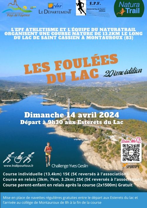 L'EPF Athlétisme et l'équipe du Naturatrail du Pays de Fayence organisent la 20ème édition des Foulées du Lac.