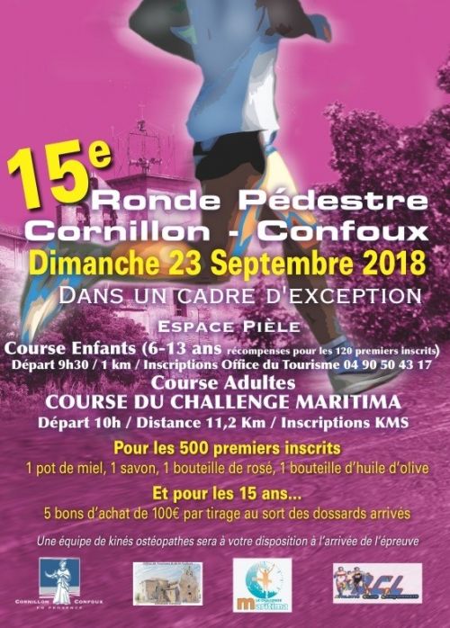 Tout au long du parcours vous pourrez découvrir une végétation typiquement provençale composée de champs d’oliviers, de bories, et de pins. Vous apprécierez aussi la vue panoramique à couper le souffle autour du village, tandis que les enfants pourront s’amuser et s’initier à de nombreux sports dans le village sportif, gratuit, mis en place pour l’occasion. Enfin un apéritif suivi d’un repas clôturera cette fête du sport en famille au cœur de la nature.Epreuve sans classement, Catégories autorisées CA->V5.