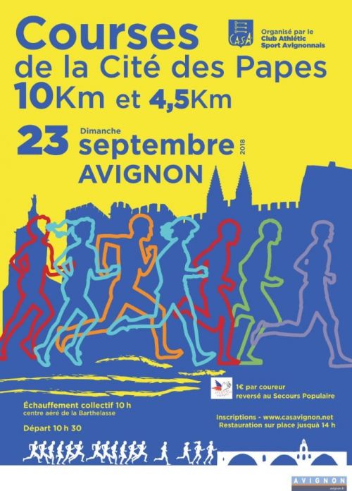 Le Club Athletic Sport Avignonnais organise, avec le soutien de la Ville d’Avignon, le 10 km et le 4.5km de la Cité des Papes. Les 2 courses sont ouvertes à toutes et tous, de cadets à Masters.