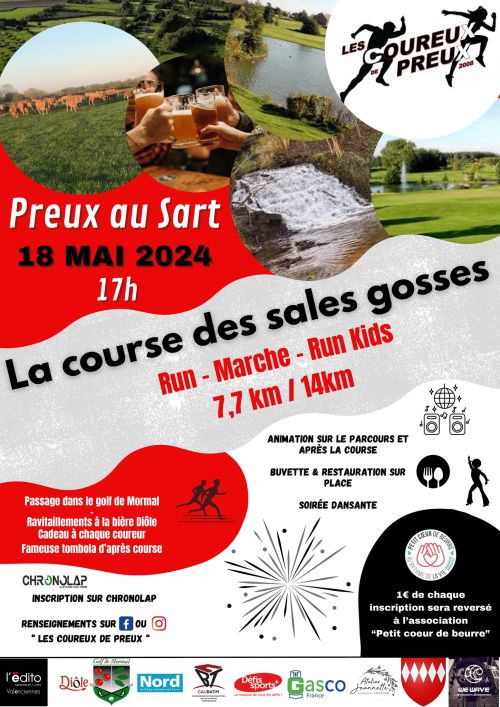 🏃♂️🎉 Ne manquez pas la Course des Sales Gosses le 18 mai 2024 à Preux-au-Sart organisée par les Coureux de Preux ! 🎉🏃♀️