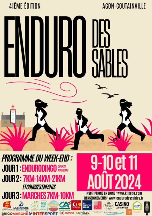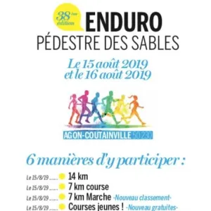 Enduro des Sables avec cette année la gratuité des courses jeunes, un semi marathon et une épreuve marche rapide officielle. Et toujours les épreuves classiques 7 et 14km.