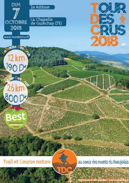 Situé à 10 km au sud de Mâcon, les courses démarrent au pied des monts du Beaujolais et vous proposent 2 jolis parcours à travers vignes et forêts. Adeptes de courses natures, venez "déguster" les Crus du Beaujolais d’une manière originale en participant au Tour Des Crus !