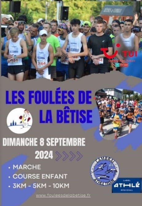 Evénement organisé par l’Athlétic Club de Cambrai. Il comprend des courses de 5km, 10km (qualificatif France), 1000 m (enfants) ainsi qu’une randonnée des familles sur 5kms. Ce sera un parcours bien différent de l’an passé, rénovation de la piste oblige! Nous avons été dans l’obligation de trouver un nouveau parcours alliant la sécurité des coureurs (imposées par les services de Police) et rester sur la commune de Cambrai. Surement moins roulant car vous aurez à franchir le pont Pompidou dans les deux sens à plusieurs reprises. Alors préparez-vous en août en faisant quelques côtes. Mais le public pourra voir passer les coureurs à 5 reprises sur le boulevard de la Liberté.
