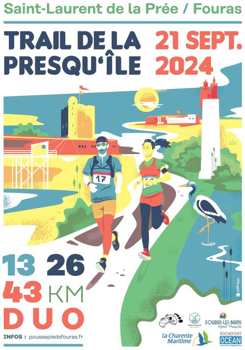 Nous avons la volonté de créer un nouvel évènement sportif qui mettre en valeur le patrimoine exceptionnel de la presqu’île de Fouras et les marais de Saint Laurent de La Prée. Voici ce que propose ce Trail Marin : 13 km dans les marais de Soumard avec panorama sur l’Estuaire de la Charente 26 km pour le tour de la presqu’île dont le Fort Enet 43 km en solo ou duo entre marais, plages et tour du Fort Enet