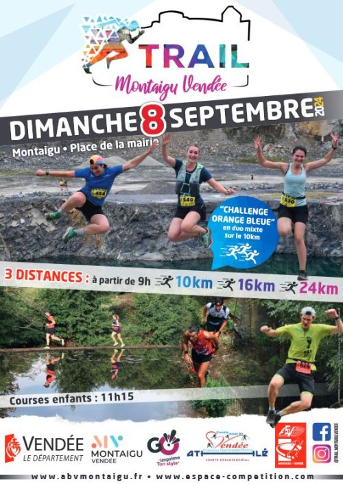 Le Trail Montaigu Vendée avec 3 distances trail et 2 courses jeunes.