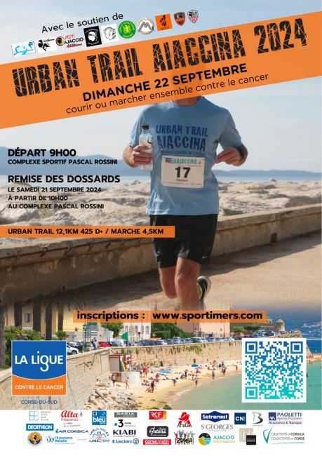 L'Aiaccina c'est un Urban Trail et une marche organisée à Ajaccio pour collecter des fonds au profit du Comité de la Corse du Sud de la Ligue contre le Cancer. Le parcours est composé d'une boucle de 12 km et d'une marche de 5,3 km dans le périmètre d'Ajaccio, 12 kilomètres pour la bonne cause à faire en marchant, en trottinant ou en courant entre copines, en couple, en famille, ou entre collègues.