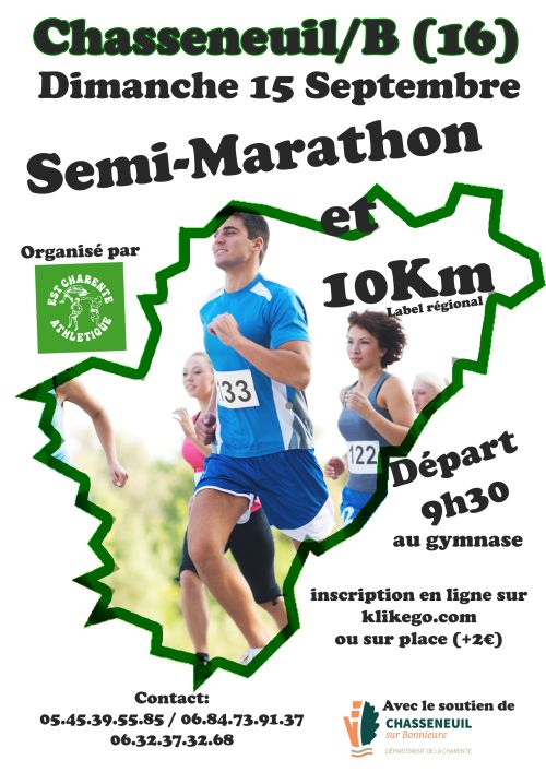 Semi-marathon de CHASSENEUIL SUR BONNIEURE organisé par le club d'athlétisme EST CHARENTE ATHLETIQUE.