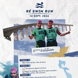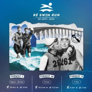 Le « Ré Swim Run », c’est l’épreuve de swimrun de l’Ile de Ré organisée tous les ans fin septembre. Le swimrun est un sport de pleine nature combinant course à pied et natation en eau libre. Nous proposons plusieurs formats de courses adaptés à chaque niveau de pratique.