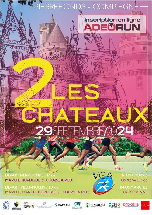 Les Deux Châteaux propose 2 courses, une marche nordique. Le parcours, de 17 km environ, est très roulant sur piste cyclable, au coeur de la forêt de Compiègne et reliant le château de Pierrefonds au stade Petitpoisson de Compiègne. Vous emprunterez le parcours habituel par la piste de Vieux moulin.