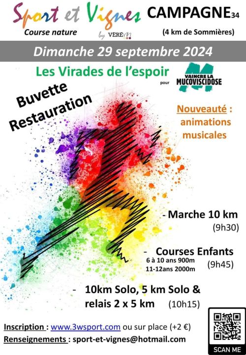 Le dernier dimanche de septembre , nous vous donnons rendez-vous à Campagne (à 4 km de de Sommières) pour soutenir l'association Vaincre la Mucoviscidose dans le cadre des Virades de l'Espoir