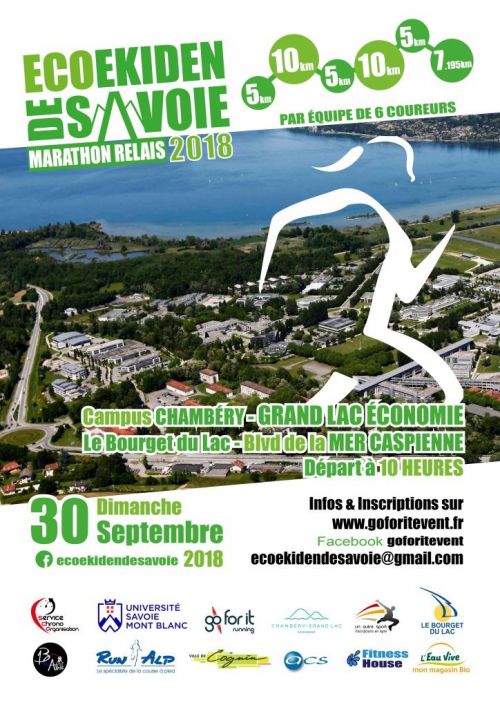 Première édition de L'ECO EKIDEN DE SAVOIE traduit plus simplement par "Marathon relais". Cette épreuve proposera aux coureurs de parcourir la distance de 42.195KM sous forme de relais de 6 équipiers dans un cadre magnifique entre lac et montagnes, sur un site respirant le progrès et l'avenir, celui de Chambéry Grand-Lac Economie. Grâce à son concept et à ses courtes distances (5-10-5-10-5-7.195), L'ECO EKIDEN DE SAVOIE saura se rendre accessible au plus grand nombre : clubs, étudiants, entreprises, familles, débutants et être une fête populaire sur le département de la Savoie.